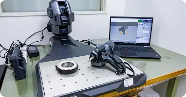 Three-dimensional measurement inspection. Measurement inspection of all products (except micro products). in addition to basic measurements, roundness, concentricity, parallelism, and straightness are also measurable