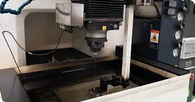 A wire-cut electric discharge machine specializing in high-precision micromachining. One of its features is the use of an oil-based machining fluid, which narrows the discharge gap and is advantageous for fine machining. This also provides an excellent surface finish.